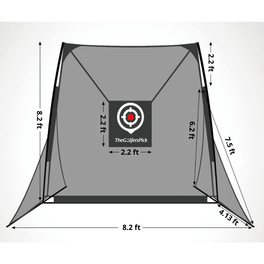 8ft high, 8ft wide and 3ft deep is huge enough for practicing your golf swing, hitting and driving in backyard, yet compact enough to fit in your garage.